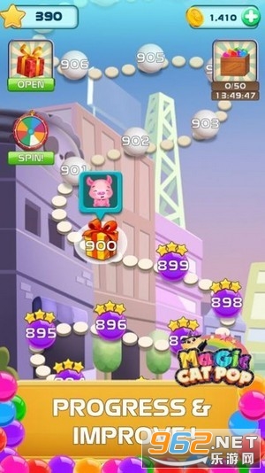 《魔法猫流行乐红包版》是一款轻松的泡泡龙消除赚钱游戏,简单的游戏玩法,不但可以打发无聊的时间,在家一边玩游戏一边赚红包,福利好,赚钱轻松,感兴趣的朋友欢迎来962下载吧!