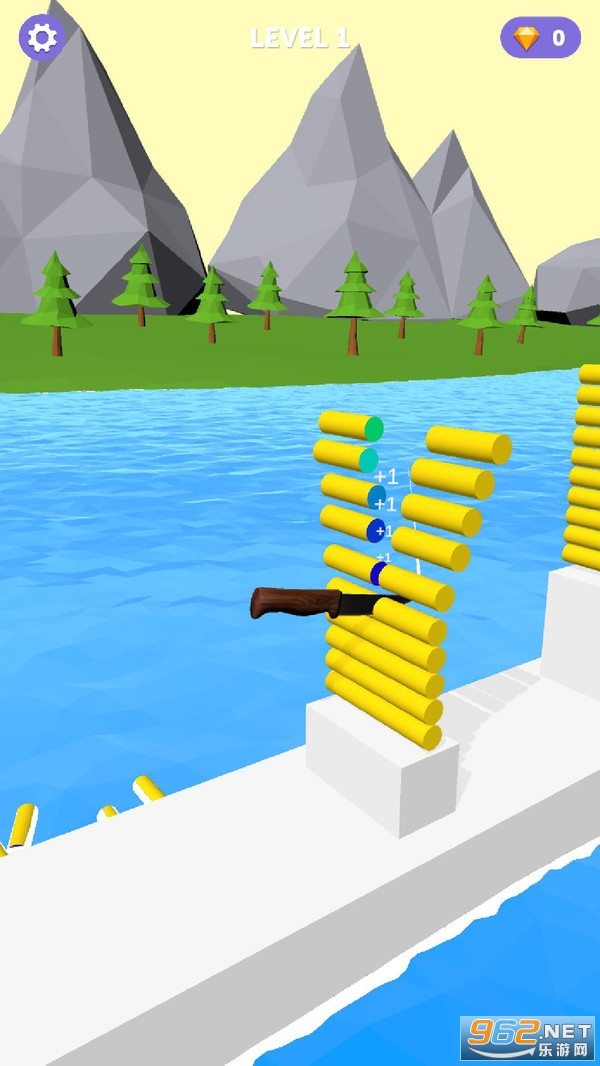 不断翻转切割,切的物体越多最后得到的奖励也就越多,这款游戏有超多关卡等大家来挑战,操作很简单,单手指点击式切割操作,在切物体的时候要小心控制小刀,千万不要把小刀转到水里面去了。