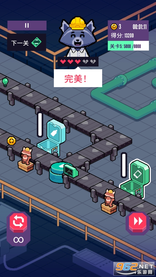 4、你必须加速你的手,否则垃圾会落在传送带下,这样闯关你就会失败。