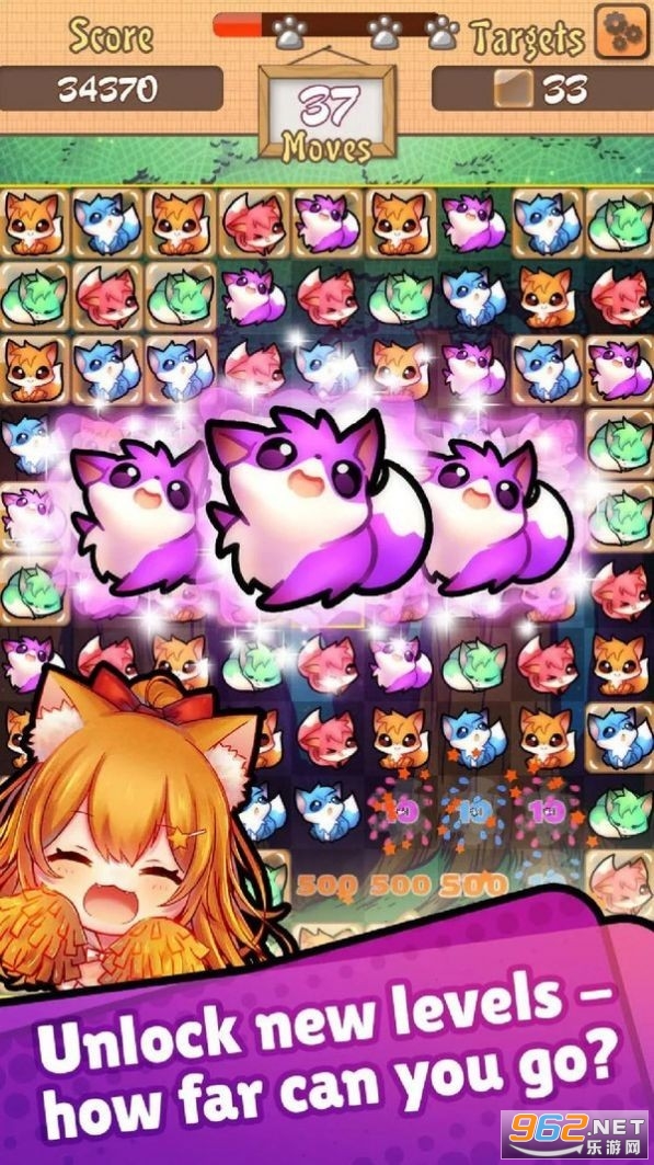 一款充满着趣味休闲类游戏。当我们来到游戏中的时候,便是会进行着消除玩法,游戏中有着经典的三消玩法,以及各种小狐狸在里面,特别的可爱的样子哟。感兴趣的玩家速来游戏中体验吧!