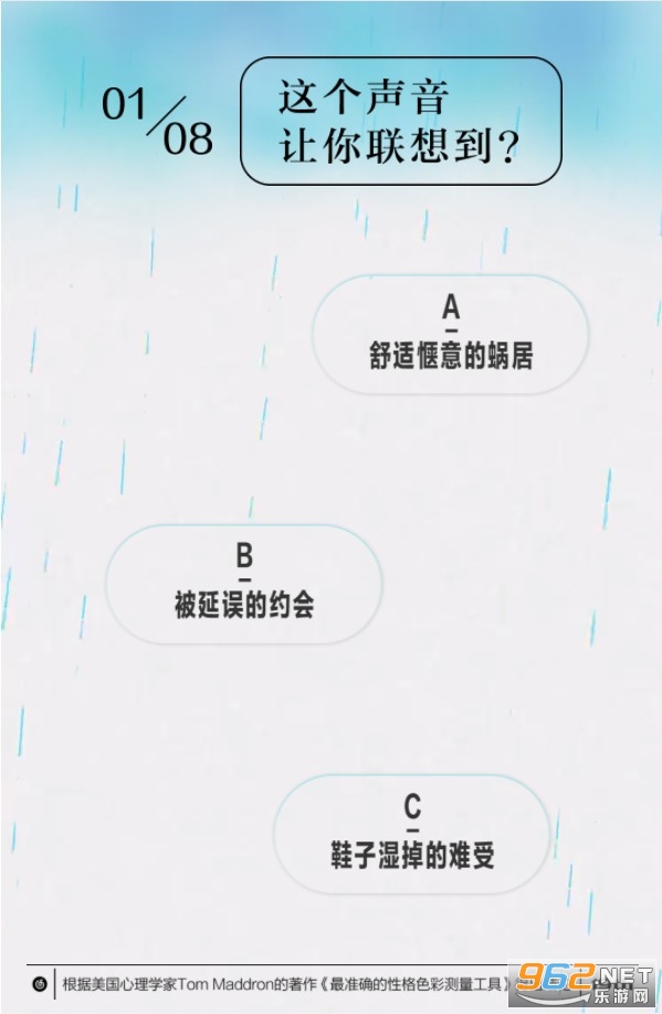 《人格主导色测试网页版》是一款突然间火爆朋友圈的测试类游戏,在网易云音乐上可以进行测试,主要的玩法是根据对应的音乐去让玩家们感受到独特的性格的认知,然后通过各种不同色系的颜色去进行呈现,感兴趣的亲们可以来试试哦。