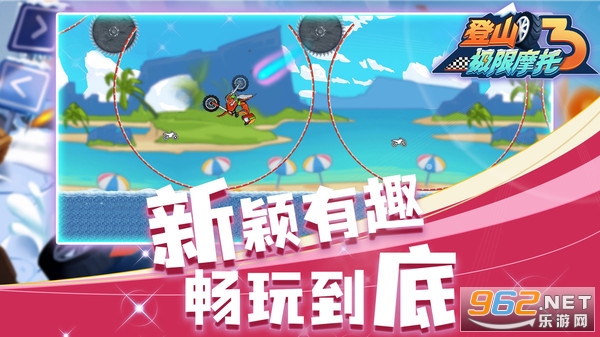 《登山极限摩托3》是一款精彩刺激的摩托车竞速游戏,较为真实的场景和音效设计,给你带来极强的游戏代入感,有超度款式的摩托车以及各种场景等待着我们去解锁,选择自己喜欢的摩托车参加比赛,在赛道上尽情飙车,但是要小心障碍物,并且在崎岖路段要小心驾驶。