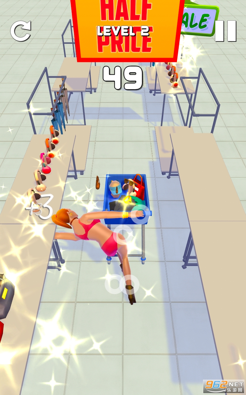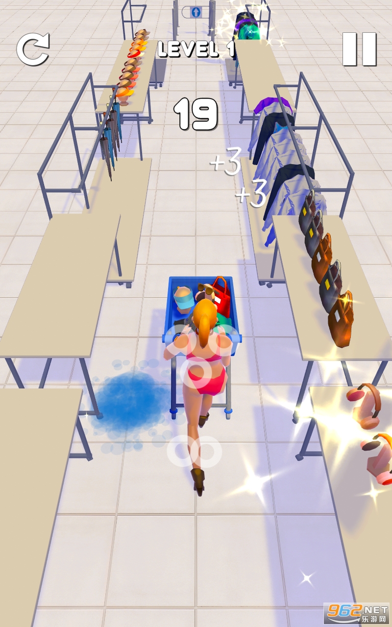2、拾取沿途各种各样的时尚购物袋,疯狂向终点冲刺,很有趣;