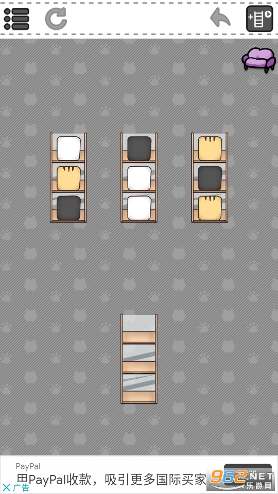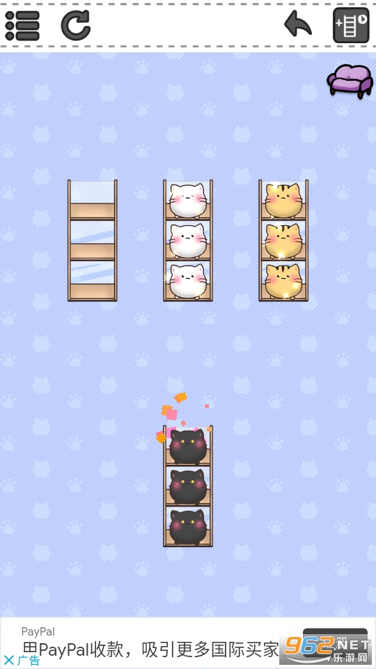 这个游戏的规则是将相同图案的猫块堆积在每个猫塔中。