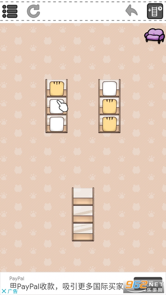 点击猫咪塔,将顶部的猫块移到所需的猫咪塔中。