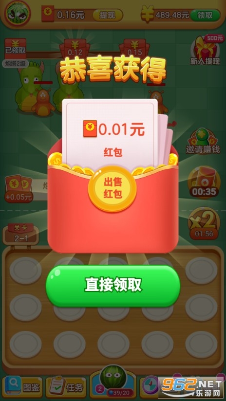 让人上瘾的休闲合成游戏,还可以邀请你的朋友们一起来玩,邀请玩家一样有红包福利,大家千万别嫌得到的红包少,因为红包是无时无刻都在收获的,一直收集着一天还是能积攒不少的。