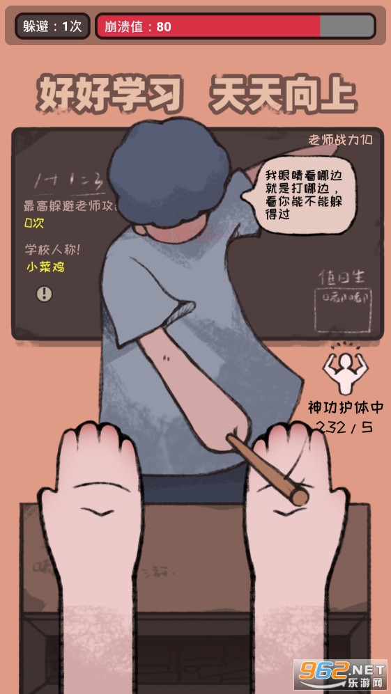 《小强同学你作业呢手游版》是一款十分好玩的休闲解压游戏,游戏中你因为没有及时完成作业,受到了老师的责罚,你需要灵活躲避老师的教鞭攻击,快速的躲避,非常的考验玩家你的反应能力和观察能力的!