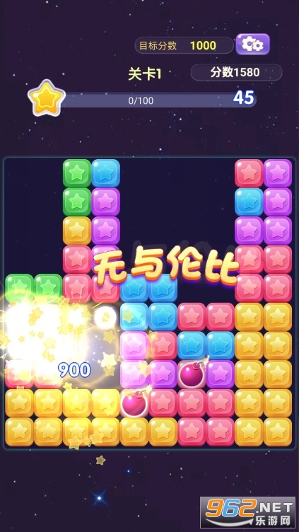 一款休闲益智消除闯关游戏。经典的消除星星玩法,当相同颜色的方块至少3个连在一起的时候就能消除得到分数,一次性消除的越多获得的分数奖励也越多,达到关卡的目标分数后就能成功通关并获得奖励哦。是休闲娱乐、打发时间的最佳选择,喜欢的话就赶紧下载吧。