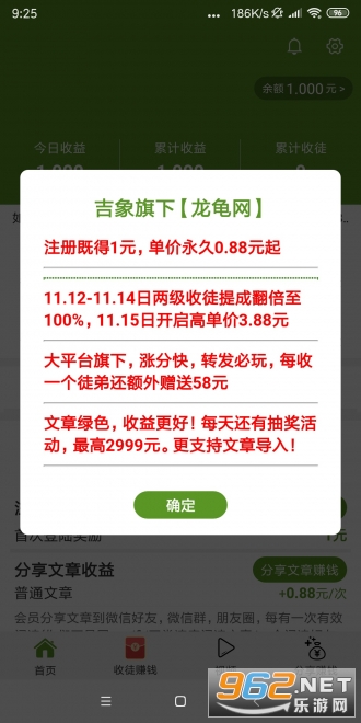 《龙龟网app》是一款完美的手机阅读赚钱软件,强大的辅助功能,操作简单,不但可以打发无聊的时间,还能一边阅读赚钱一边福利,看的越多赚得越好,奖励多,福利好,感兴趣就来962下载吧!