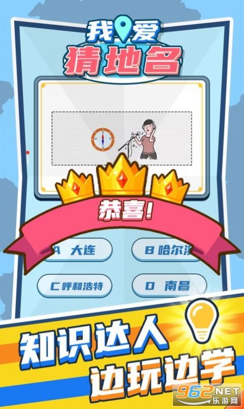 2.初始总共100关,根据题目选择地名,回答出相应的答案,顺利闯关。