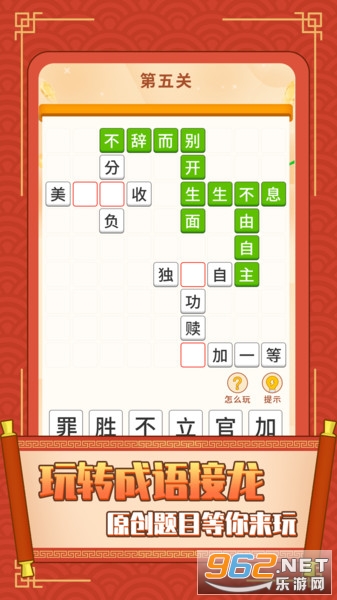《成语你我猜红包版》是一款轻松的成语答题赚钱小游戏,简单的赚钱模式,不需要任何费用,操作也简单,超多关卡等你来挑战,每一关都有金额不等的红包,提现也方便,感兴趣就来962下载试试吧!