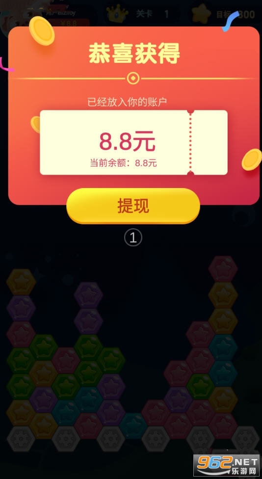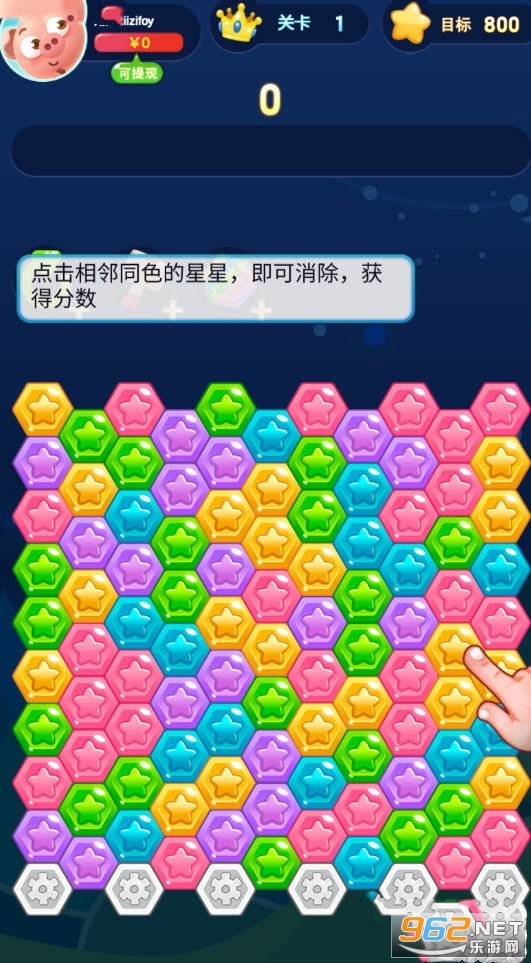 《六边形消星星猪猪版红包版》是一款轻松的消除类赚钱小游戏,简单的游戏玩法,轻松的游戏体验,超多红包关卡等你来体验,操作也简单,赚钱也轻松,感兴趣的小伙伴还在等什么?来962下载试试吧!