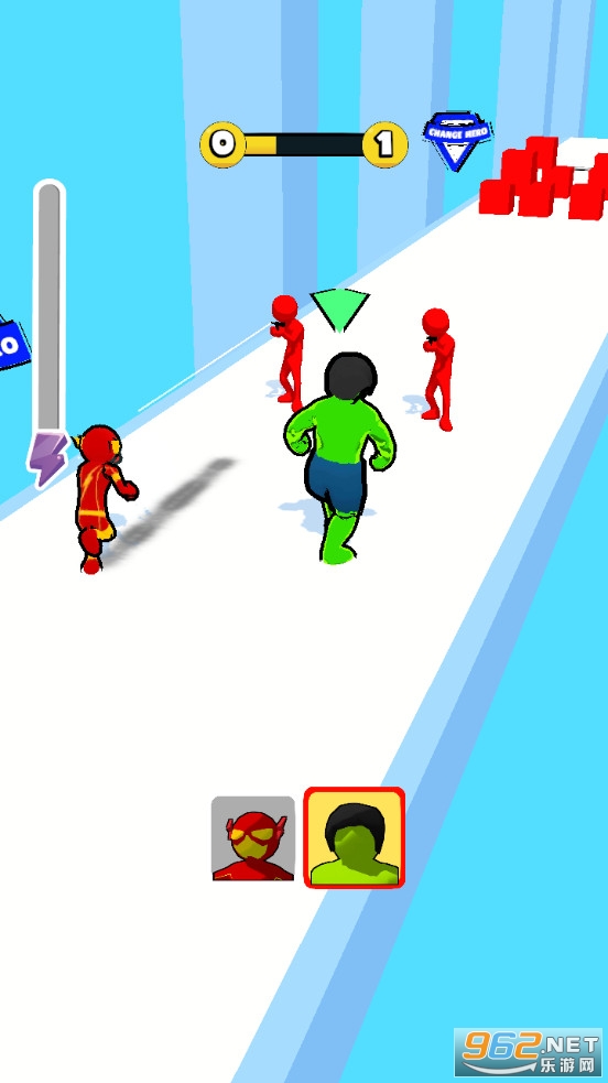 玩法比较简单,延续了变装跑酷的经典了流程,玩家从最开始的两种超级英雄入手,