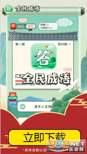 《全民成语》是一款寓教于乐的成语答题游戏,内置有海量优质的成语词汇,玩法非常简单,正确答题就能领取对应的红包,有成语填空,成语接龙,成语抢答,看图说成语多个玩法选择,游戏中设定的关卡超多,让你领红包领到手软。