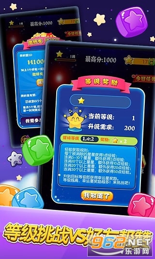 一款让全球亿万玩家都热力追捧的经典消除类休闲小游戏,采用经典的2D竖版画面风格,整体游戏画面设计很精致,以黑色为背景,搭配上五颜六色的星星,整个星空便映入眼帘,十分的和谐美好。而且游戏中的星星,采用拟物化设计,很有质感,将颜色相同的星星,消除时,会像烟花一样绽放出很多小星星。