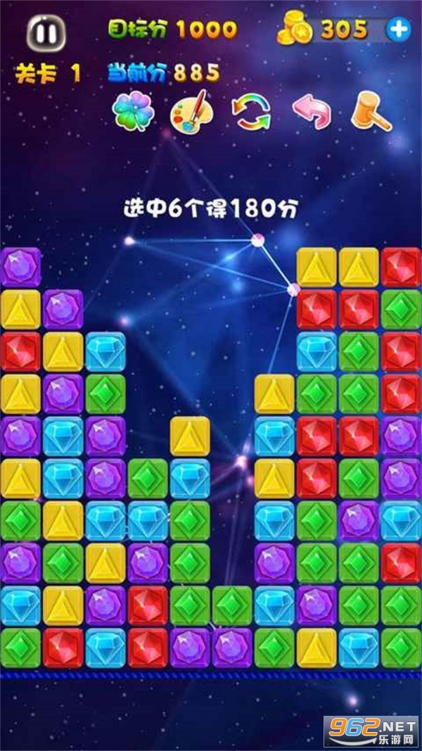 -当没有宝石可消除,且当前分数大于目标分数即可通关