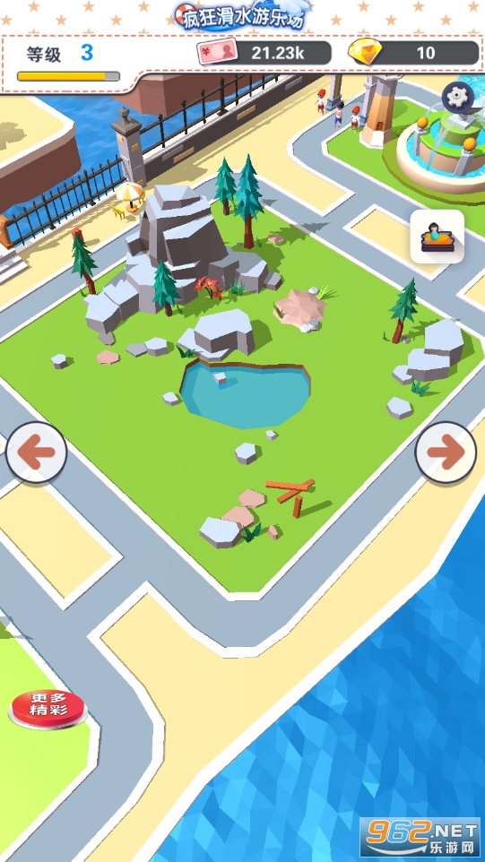 一款以水上乐园为主题的模拟经营游戏,游戏中有非常多的乐园设施等你来解锁,到达一定的收益以后即可进行建造工作哦,让在游乐园发展成为最大的水上乐园,吸引众多顾客前来游玩哦,喜欢就快来下载吧