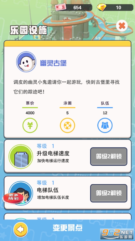 2、吸引更多的客户参观您的游乐场,不断升级设施,解锁更多的场景和娱乐项目,提高票价,赚取更多金币,成为世界顶级操场大亨。