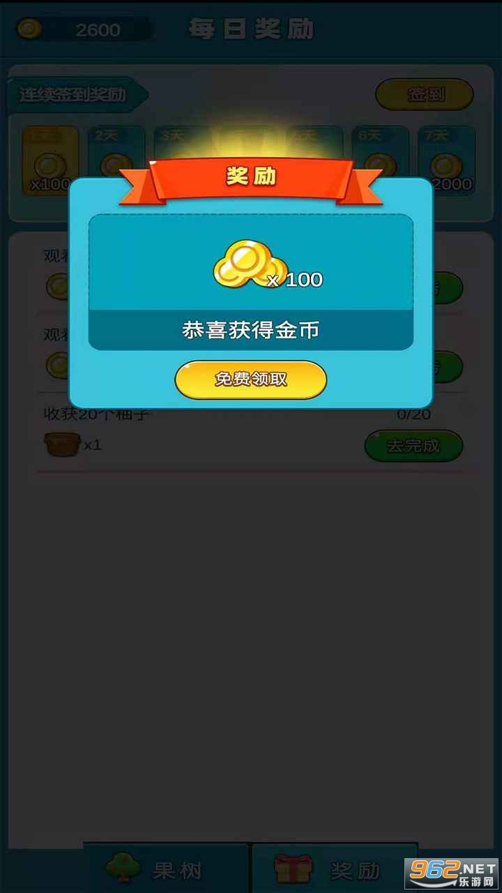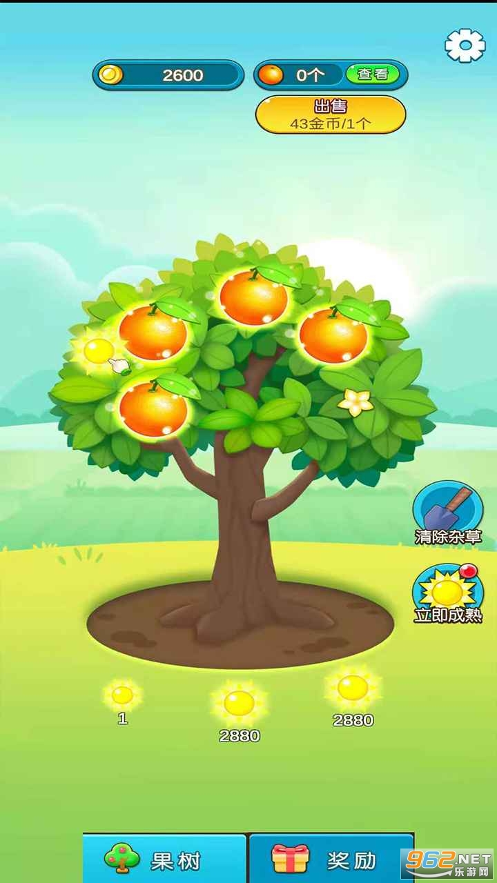 1、欢乐的种树游戏,真实的可以兑换水果,让你再也不用花钱买水果了,完成任务还可以领取金币赚钱,果树是会生病的,你需要对它们进行更好的照看,才能够让果树更快更好的成长起来才能有更多的收益。
