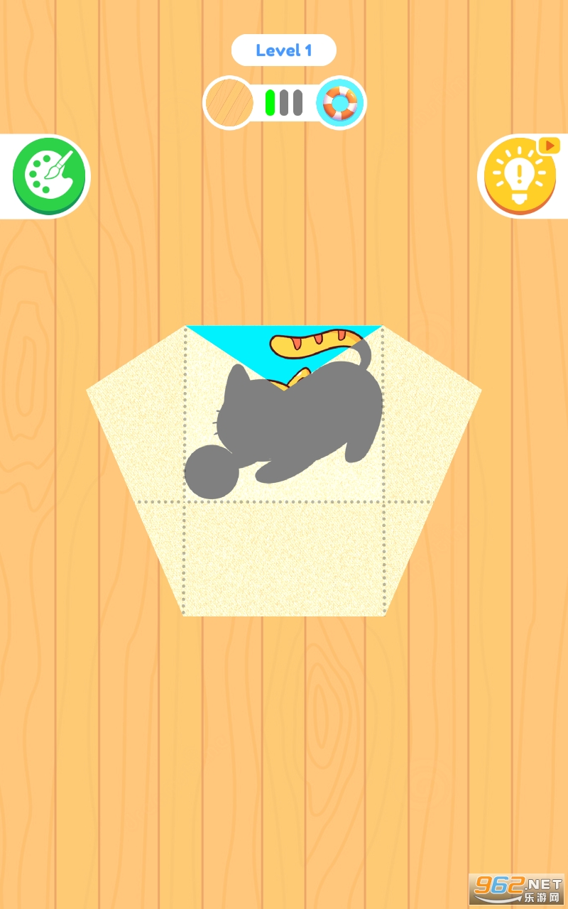 2.这是一款比拼智力的游戏,全程都是依靠手指去点击操作,滑动屏幕完成相关的折纸任务;