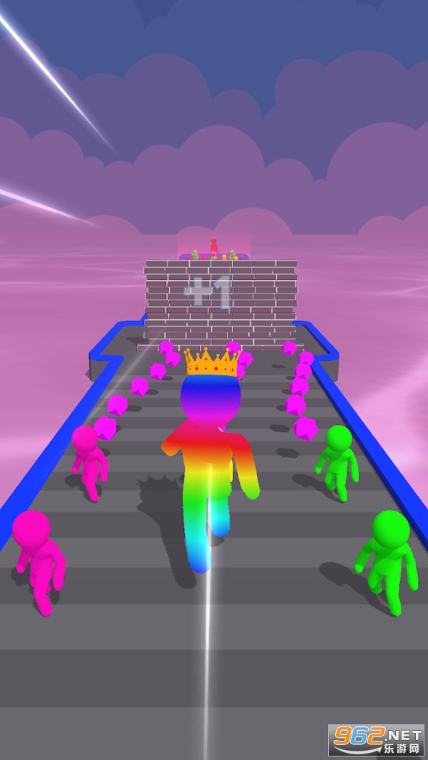 《巨人粉碎吧》是一款魔性十足的闯关游戏,我们需要操作小人疯狂奔跑,和同色的小人合成,不断合成进化成真正的巨人,合体的方式很简单,只需要与同色的人撞击就能合体,如果与不同色的小人撞击,我们的身体就会变小一点点。