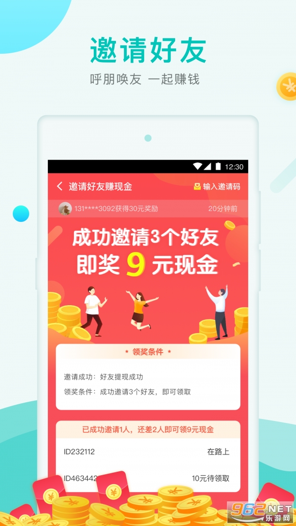 收徒赚钱:邀请好友一起加入手游赚,好友和你都可以获得奖励,徒弟越多收益越高。