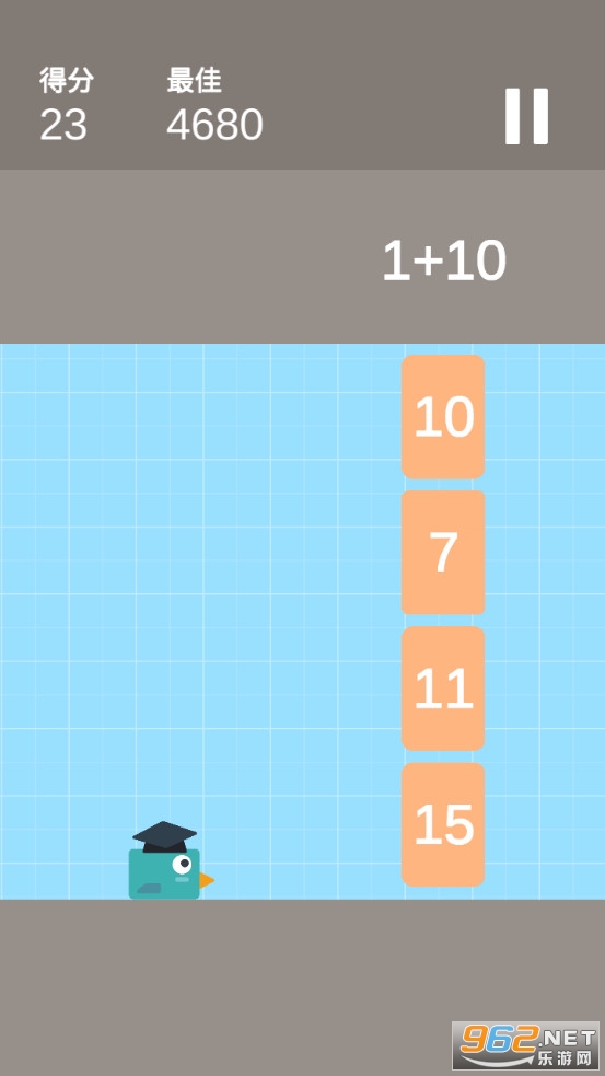 《博士鸟游戏》是一款画面清新简约的敏捷闯关类益智休闲手游,游戏中玩家将控制一只小鸟去冒险,点击屏幕可以让小鸟飞行,前方会出现各种数字墙壁,上方会给出一些算式,玩家需要快速的算出结果然后让小鸟去撞击与之对应的数字,如果撞击其他数字挑战就失败了。