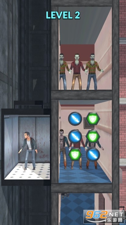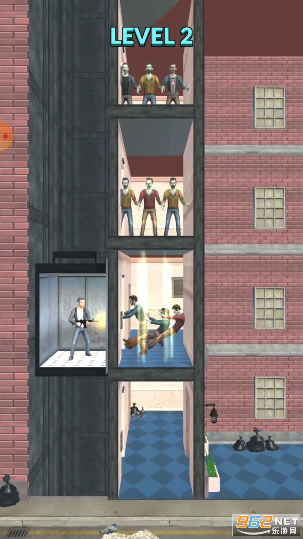 全新的密室逃脱玩法,只有消灭掉所有的僵尸我们才能顺利的从这个废弃的大楼中逃出去,电梯会缓慢上升,每到一层就是一个新的关卡,遇到隔壁的僵尸我们必需快点搞到武器然后消灭掉它们。