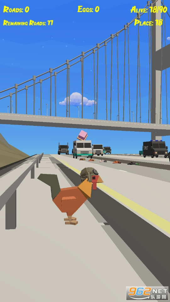 在各种比赛中,操作公鸡在过马路的时候一定要小心,不要配汽车撞飞。在鸡跑游戏中在路上捡鸡蛋,收集尽可能多的鸡蛋,这样能够为玩家带来更多的分数加成,轻松赢得比赛的冠军。更多帅气公鸡等你来解锁,还有着各种皮肤装扮