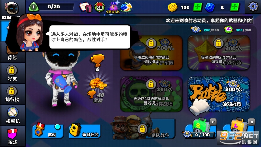 趣味的多人竞技游戏,玩家可以选择多种不同的模式去挑战,可以组队竞技,也可以匹配对战,灵活走位,利用喷枪去染色战地盘,灵活走位,打败其他的对手,存活到最后,喜欢的朋友可以下载试试。