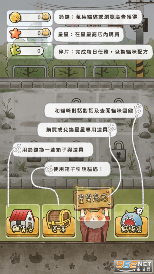 1、金币搜集更换背景,转换不同心情与生活步调,各式有趣猫咪设定细节,令人会心一笑;