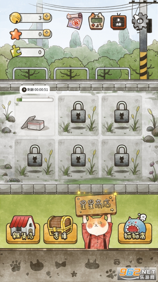 一款画风比较治愈的猫猫放置养成游戏,游戏没有剧情的打扰,不断的捉猫猫换取收益来扩大自己的土地哦,非常轻松休闲的放置玩法,玩起来十分的过瘾,在静谧的游戏中获得快乐吧,下载来试试吧
