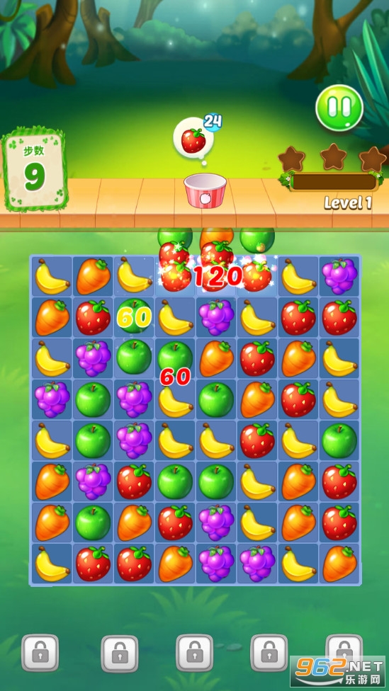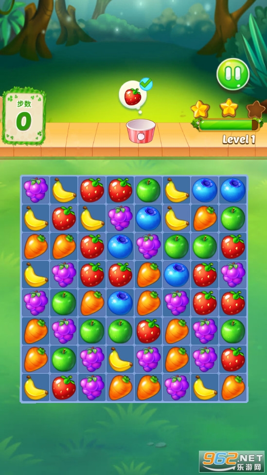 趣味的三消游戏,玩法简单,点击滑动消除各种各样的水果,一次消除4个5个还有着特殊水果生成,合理的点击滑动,在规定次步数完成挑战,适合闲暇是打分时间。