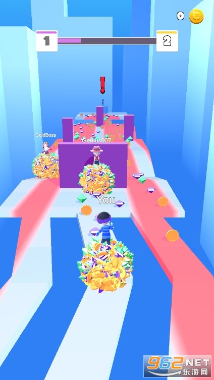 2、简约的3D图形打造各种多彩的火柴人形象,各种经典的水上赛道关卡展现。