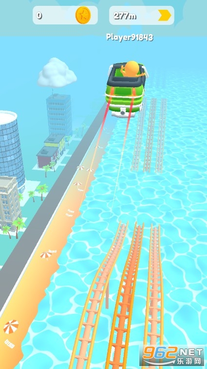 《人类疯狂过山车》是一款惊险刺激的过山车竞速闯关类游戏,驾驶过山车和其他玩家在线角逐,轨道修在了海面上,大家在驾驶的时候一定要小心了,在避让障碍物的同时,也要控制好方向,千万不要冲出跑道掉落水中,不然你会被直接淘汰出局。