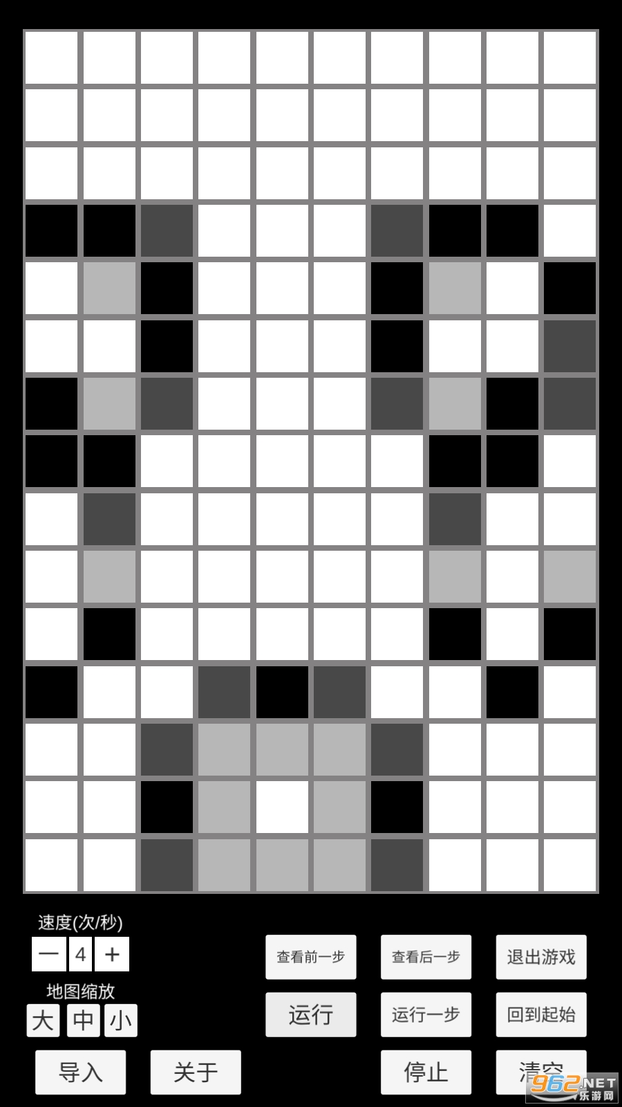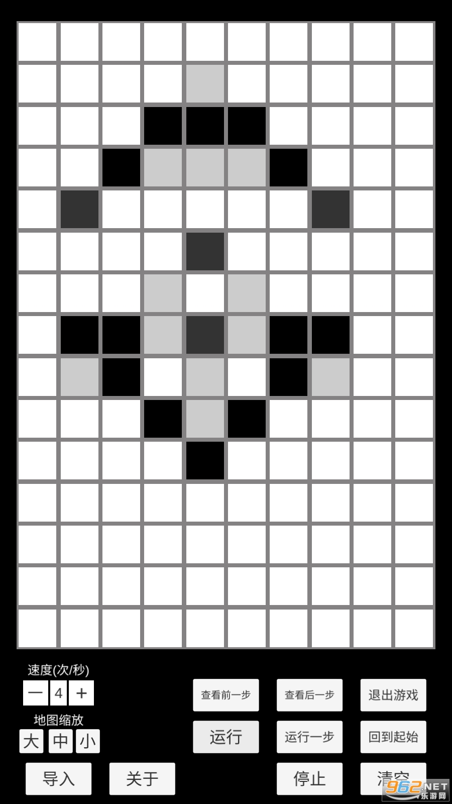 本游戏中,你可以自由地摆放生命图案,也可以导入各种经典生命图案,观察它们的演化历程,尽情发挥你的创造力吧!