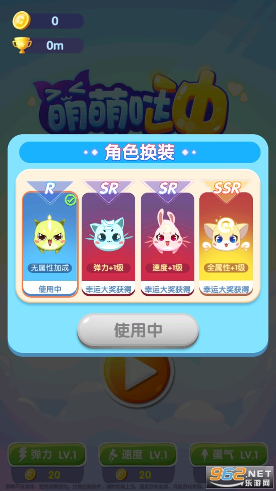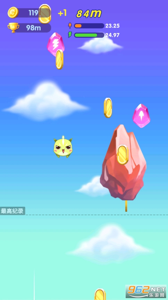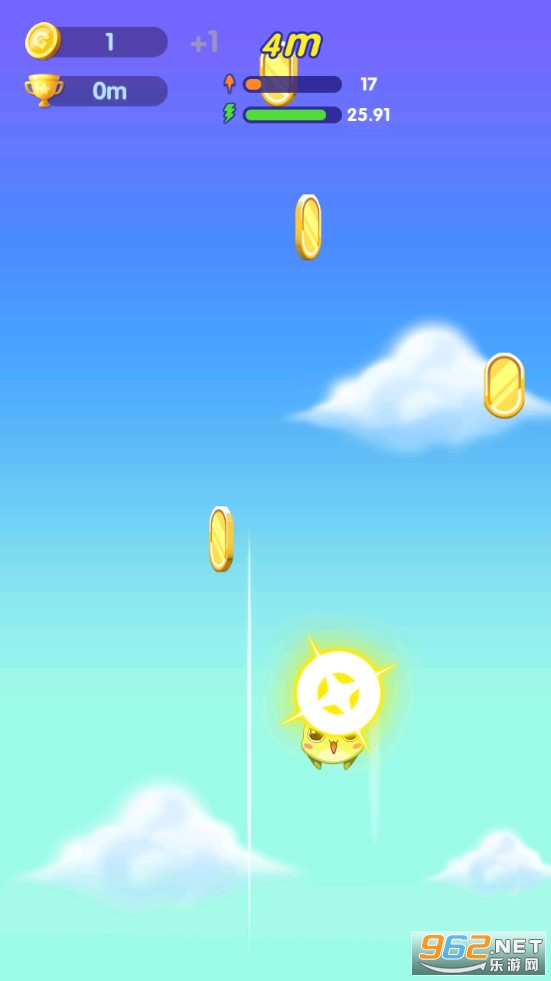 《萌萌哒冲游戏》是一款画面清新的控制一只萌萌哒的角色向上飞行的趣味闯关手游,游戏中有着多种不同的萌萌哒皮肤可以解锁使用,玩家可以利用金币来强化多个技能,增加角色的速度、弹力、蛋气等属性,注意向上移动的时候躲避出现的陨石等各种障碍物。