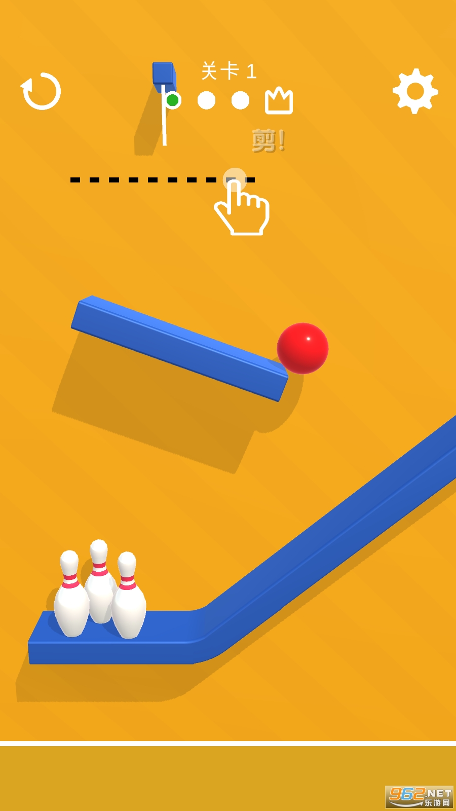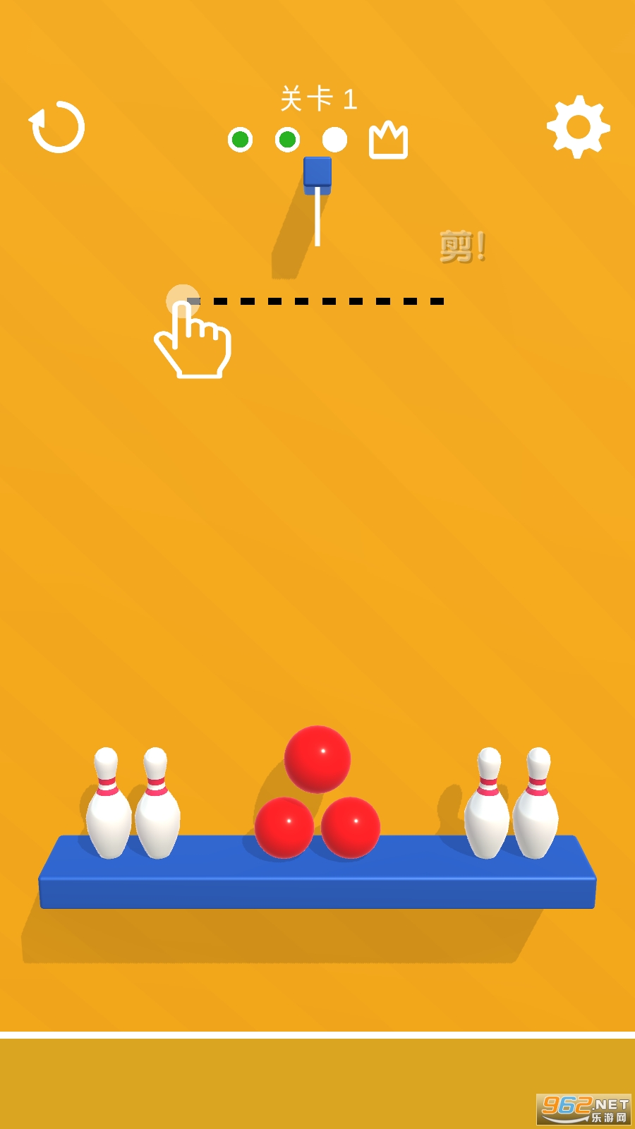 游戏玩法很简单,用手指划断系住保龄球的绳子,让保龄球坠落撞击保龄球瓶。