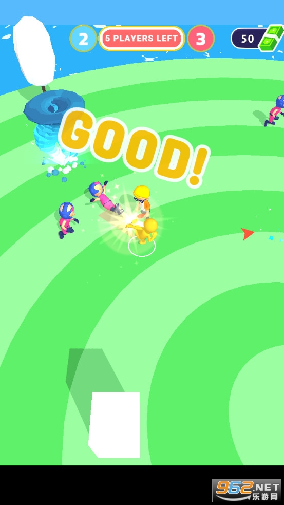 《小小格斗英雄游戏》(Tornado.io)是一款画面清新的橡皮人对战休闲竞技手游,游戏中玩家将控制橡皮人在一个平台上冒险,这里有着旋转的龙卷风,也有着大量的对手,玩家可以点击滑动控制角色移动,松开屏幕可以让角色踢脚去攻击其他人,将全部对手击败获得胜利。