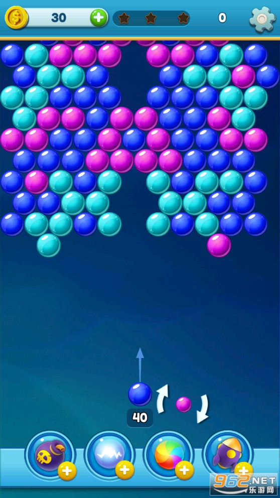 经典流行的泡泡休闲游戏,在游戏中需要瞄准射击,击碎所有的泡泡珠,需要您充分利用弹道轨迹找到最佳的射击角度,才能获得更高的分数。准备好行动了吗?考验您的战略技能的时刻到啦,跟您的亲朋好友们一起竞争,看看谁能达到最高分数吧!