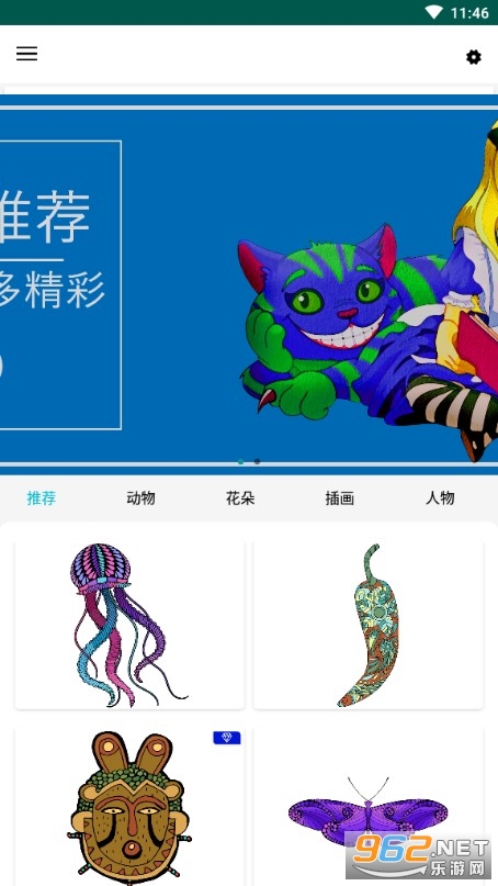 2、为美丽的花卉、动物、纹理、曼陀罗、猫咪等填色,打造您自己的配色方案。