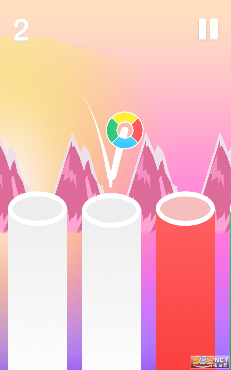 1、掌握好节奏点击彩球颜色与圆柱匹配,完美跳跃挑战最高分数成就。
