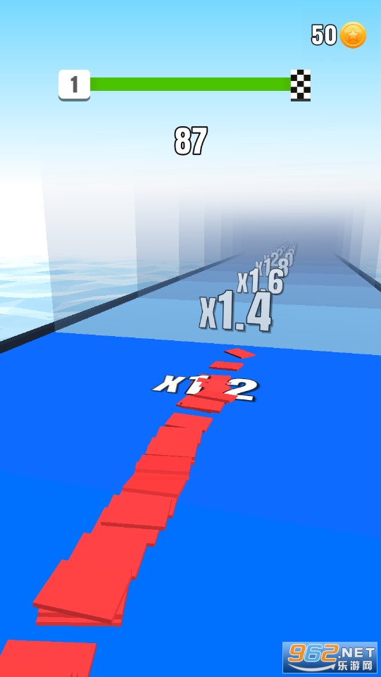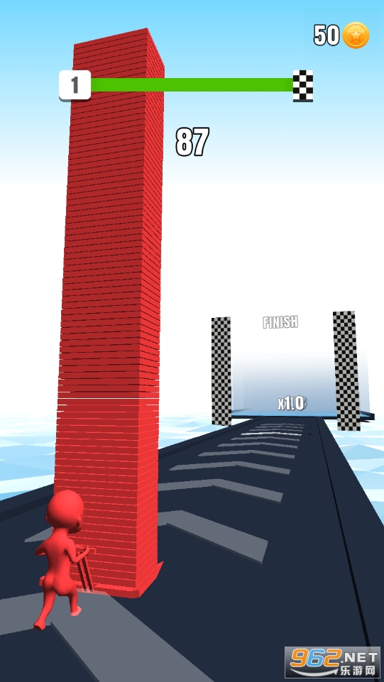游戏以不同的色彩为主,玩家们在不断奔跑的同时也要注意色彩板累积的高度哦,在终点的时候高度决定了拿到的奖励倍数哦,非常的好玩