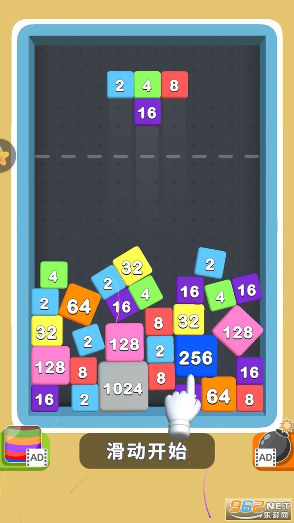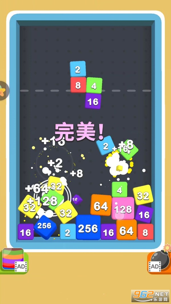1、缤纷多彩的方块数字越大体积越大,合理放置消除获得更高分数。