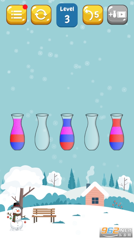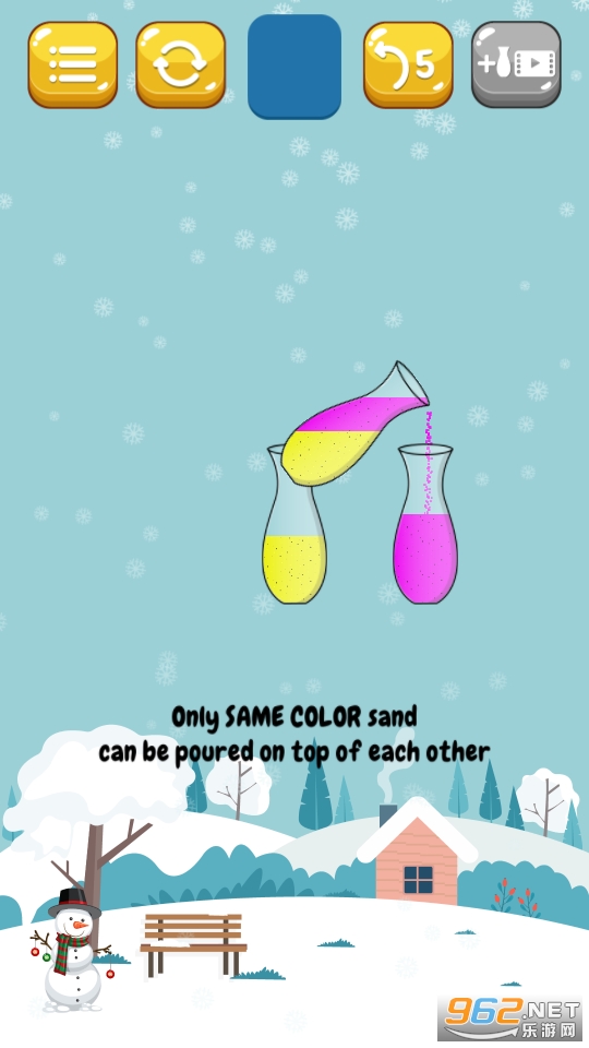 2、随机杯子和沙子颜色分布,每个关卡都是新的挑战,动脑思考进行闯关。