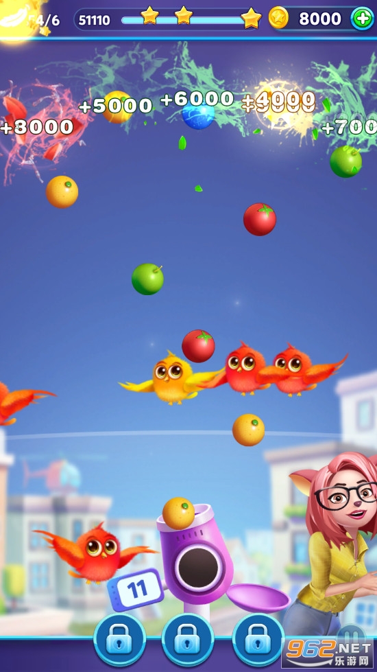 瞄准水果,拍摄带有特殊物品的章节,这样做可以拍摄出神秘的水果!拯救被贪婪的食鸟,并建立自己的果园!