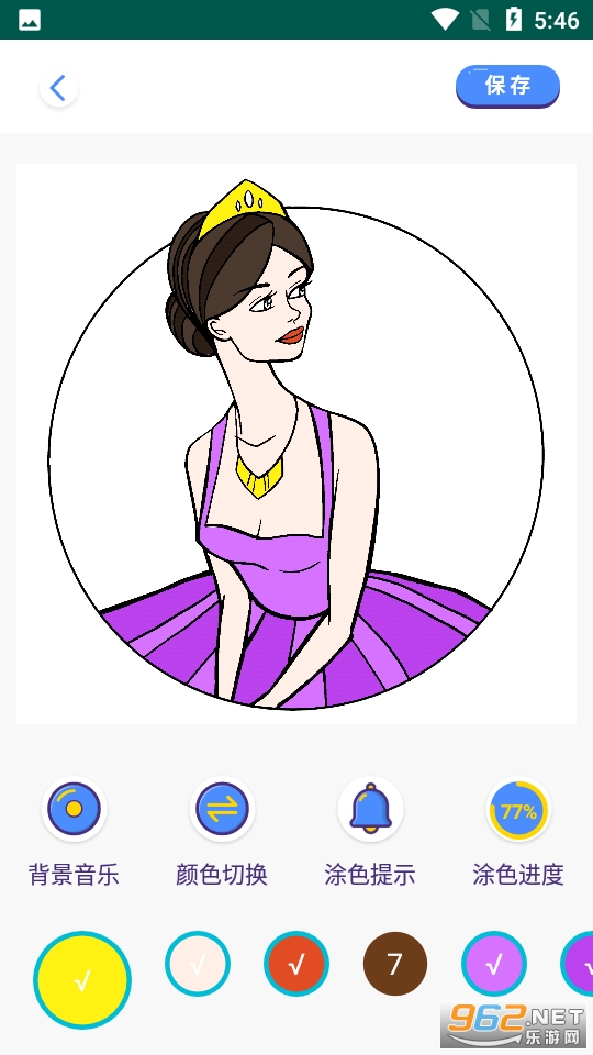 双指向外滑动,将图片放大,然后找出与之对应的数字,点击即可填上颜色。同时,数字上会显示出完成进入。