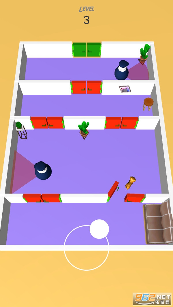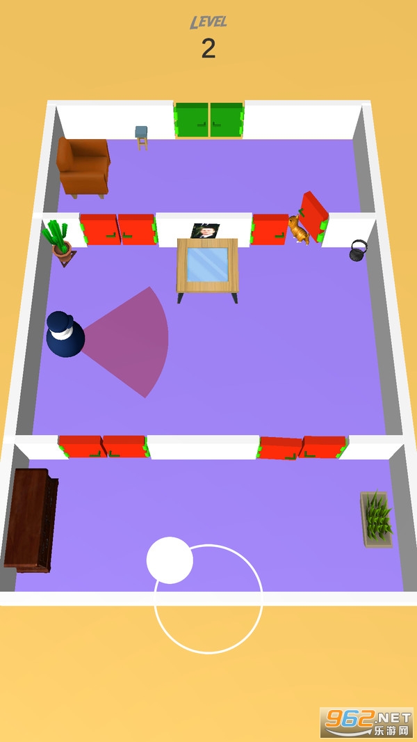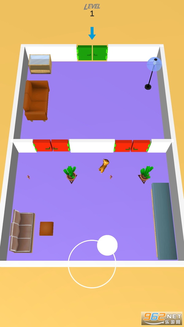 不同的关卡房间的格局布置是完全不一样的,越难的关卡房间越多格局越是复杂,所以操作的难度也会越大,猫咪会随机的出现在里面的任何一个房间,先思考想办法挪动猫咪,我们可以分成几个步骤来救出猫咪。