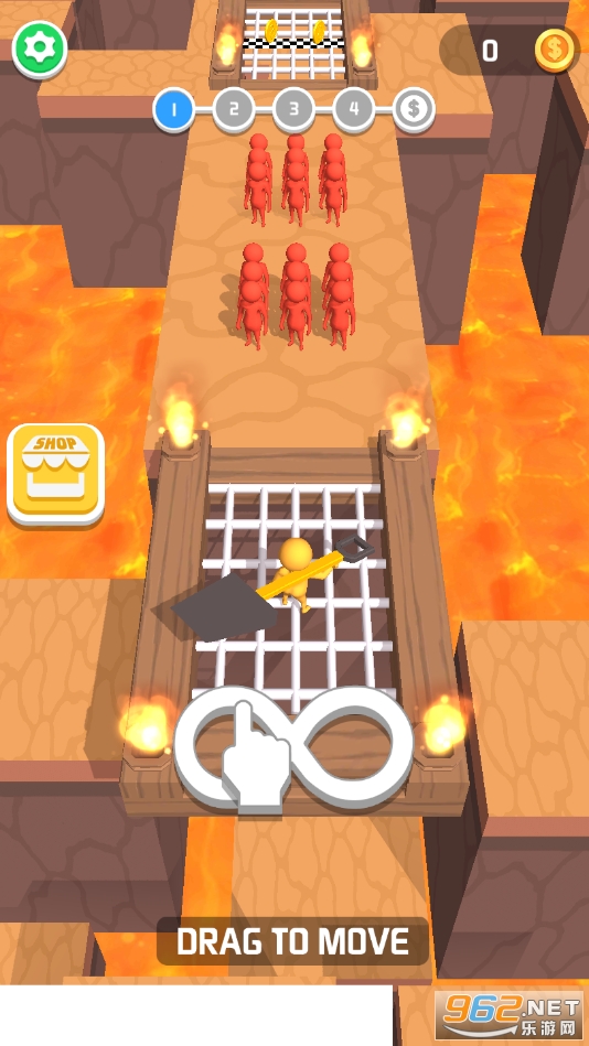 游戏中你的角色人物是拿着铲子进行战斗或者进行阻挡敌人的进攻的,你可以用铲子将它们都拍到岩浆里去,也可以推开,游戏玩法十分的灵活,全看玩家你自己的选择。