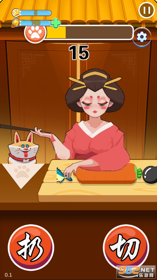 比较考验玩家反应能力的一款休闲游戏,玩家在游戏中只需要切菜并且扔掉炸弹以及不可以食用的菜头就可以了,切到自己的手指或者是扔掉好的菜都不可以哦!